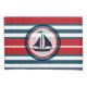 Design nautique avec décoration de voilier en forme ronde sur rouge, bleu et blanc rayé arrière - plan