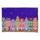 Cute Night City Oreiller Simple, Inversé. Cité médiévale nocturne avec un chat à pied sur le côté avant, et ciel nocturne avec étoiles et avec les mots "Sweet Dreams, Your Name" sur le côté arrière. Gras, coloré mais mignon et joli. Sexe neutre, pour tous les petits rêveurs.