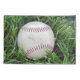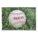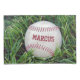 Un gros plan de baseball en herbe verte avec un nom personnalisé. Le nom est modifiable ou peut être supprimé.