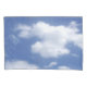 Des nuages blancs et duveteux sont dispersés dans un ciel bleu vif. L'image transmet un sentiment de paix et d'ouverture.