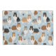 Les chiens mignons de Collie rugueux s'assoient et se tiennent et se retournent avec des manteaux de sable, tricolores, merles et blancs avec des os de chien éparpillés et des motifs de pawprints.