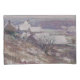 Ce dessin présente un tableau du peintre impressionniste américain Theodore Robinson (1852-1896). Il présente un paysage vallonné à Giverny, Normandie, France. Il y a des arbres et des maisons dans le paysage; les toits sont blancs avec de la neige. L'oeuvre originale a été peinte en 1889.