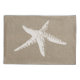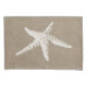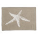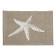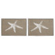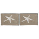Des taies d'oreillers rustiques sur la plage avec un motif d'étoiles de mer blanc sur un imprimé faux burlap.