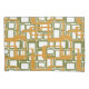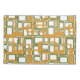 Cette taie d'oreiller a un design moderne du milieu du siècle de rectangles ouverts en or sur des rectangles ouverts en vert.