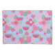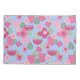 Cette taie d'oreiller est décorée dans un style scandinave de fleurs et de feuilles dans différentes tonalités de rose et de vert sur un champ de bleu.