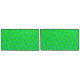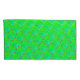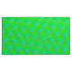 Estampado em verde chamativo e azulado, com linhas coloridas que simulam emendas com manchas ou traços nas cores de tons amarelo, laranja, vermelho, dourado, marrom e lilás. Um efeito parecido com tijolos assentados(trançado) e linhas ou listras que seriam o rejunte(cola usada no encontro das peças) onde as cores vão sendo alteradas gradualmente do amarelado ao vermelho passando pelo lilás e quase atingindo a cor azul, criando efeito chamativo. O verde que converge para um tom azul claro, junto com cocos linhas pode causar a ilusão de que os quadrados estão flutuando ; dependendo da posição que olhar e iluminação do ambiente.