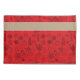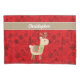 Célébrez la magie de Noël avec une touche de luxe sobre. Le monogramme personnalisé présente le nom de votre être aimé dans un élégant scénario. L'adorable graphisme de rennes est habillé de plaid beige et d'allure cousue à la main, positionné sur un arrière - plan motif festif rouge et noir.