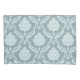 A vintage style decorative damask surface pattern influenced by rococo classical design in duck egg blue color detail on a teal background.