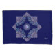 Dessin d'un vitrail d'une ancienne église européenne : une fenêtre rose, avec des touches de couleurs variées, dont des tons bleus, sur un arrière - plan bleu marine. Inposition de strass bleus. Ce motif est également disponible en rouge cardinal dans mes collections "cardinal rouge rosace".
