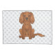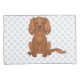 Dessin original de Destei illustrant une jolie couleur de rubis Cavalier King Charles Spaniel chien de race assis. L'arrière - plan a un motif d'empreintes de pattes de chien gris.