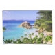Bienvenue dans le paradis des îles exotiques des Seychelles ! La photo a été capturée lors d'une journée chaude, lumineuse et ensoleillée. L'eau de mer bleu cristal tropical brille sous la lumière du soleil et est chaude et invitante pour ceux qui sont prêts à se baigner, plonger ou nager. Des cocotiers et des arbres verdoyants sont vus au premier plan de cette photo. La roche lisse patinée par la mer se trouve juste au large du rivage sablonneux. Un archipel est vu dans l'arrière - plan lointain. Imaginez vous relaxer sur la plage de sable blanc, entendre les vagues se balader sur le rivage, le bruit des oiseaux de mer et une douce brise chaude dans l'air. C'est ce qui me vient à l'esprit quand je vois cette photo des Seychelles tropicales. Peut-être vous projetez-vous sur un voilier ou simplement assis sur la plage des îles avec une boisson fraîche à la main. Quelle que soit cette photo, vous pouvez être sûr que votre esprit sera dans le paradis tropical!
