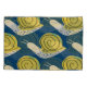 Des escargots jaune et rose pâle sillouent un motif sans soudure. Arrière - plan bleu marine. Décor faune sauvage. décor papier peint, textile, papier d'emballage, imprimé tissu. Illustration vintage Laissez les silhouettes escarpées danser sur bleu marine pour une touche vintage. Escargots en rose et jaune, une torsion sauvage sur l'arrière - plan de la nature. arrière - plan, motif, abstrait, illustration, texture, décoration, bébé, nature, dessin animé, floral, animal, sans couture, caractère, enfant, croquis, doodle, tissu, ornement, jaune, textile