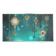 Or, clés antiques avec engrenages et cadrans accrochés sur chaînes dorées sur arrière - plan vert lumineux.