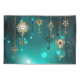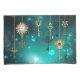 Or, clés antiques avec engrenages et cadrans accrochés sur chaînes dorées sur arrière - plan vert lumineux.