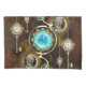 Turquoise lenses with antique watch with brass gears and golden keys on rusty, brown background. Steampunk style.