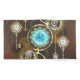 Turquoise lenses with antique watch with brass gears and golden keys on rusty, brown background. Steampunk style.