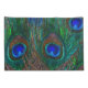 Minuit Peacock Feathers Etching Style sur un ensemble de coques coussins personnalisés. Présentation