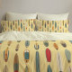 This retro print reversible pillowcase is the perfect addition to your beach home decor. The repeating classic surfboard pattern was inspired by coastal surf culture with sun-bleached boards, vintage blues, weathered yellows, and faded reds you’d see stacked outside a surf shop or leaning against a fence after a long session. The front of the pillowcase has a faded sunshine-yellow background, with a cream white reverse, so you can change the look depending on your mood. | Matching duvet cover available in store. This listing includes the pillowcase only.