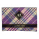 Design écossais violet, jaune doré et bleu. Motif sans couture. Texte et monogramme personnalisés.