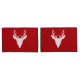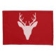 Le design original en silhouette blanche de Destei d'une tête de cerf avec de grands bois sur une couleur arrière - plan rouge.