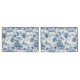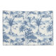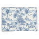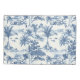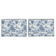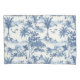 L'image représente un classique motif de toile de Jouy, caractérisé par des scènes détaillées en bleu sur un arrière - plan blanc. Il offre des paysages tropicaux avec des palmiers luxuriants, des terrains rocheux et des plans d'eau sereins. Il y a des éléments tels que des petites cabanes, des oiseaux en vol, et des îles lointaines, donnant au design une atmosphère idyllique et paisible. La motif est complexe et évoque un sens de l'élégance traditionnelle et pastorale souvent associé aux arts décoratifs français.