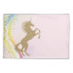 Coque coussin Unicorn avec jolie licorne or sur un arc-en-ciel pastel et arrière - plan rose. Ce mignon oreiller à licorne est facilement customisé avec le texte de votre choix. Vous pouvez également modifier la couleur de l'arrière - plan. Il s'agit d'un dessin imprimé sans parties scintillant réelle, feuille, etc.