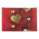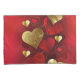 Composition verticale de rouge et d'or, valentines texturées en feuille et brocade sur arrière - plan rouge. Les décorations de la Saint Valentin.