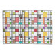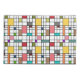 Cette taie d'oreiller a un design moderne du milieu du siècle d'une grille de lignes noires avec des carrés et des rectangles aux couleurs rétro sur un champ de blanc.