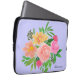 Fleurs roses d'aquarelle et feuilles verts sur perwinkle arrière - plan Manches d'ordinateur.