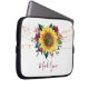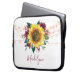 Cette pochette d'ordinateur présente un design floral d'aquarelle moderne avec un tournesol rustique, des fleurs bordeaux, du feuillage et des lampes à cordes. Personnalisez-le avec un nom.