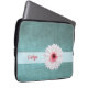 Cette grande marguerite de lollipop blanche et rose semble sortir de son arrière - plan turquoise dans cette pochette d'ordinateur portable fleuri, à la fois vive et simple. Ajoutez votre nom ou vos initiales ou supprimez le texte. Pratique n'a pas besoin d'être ennuyeux. Idéal pour un ado, un jeune de coeur ou toute personne qui aime les marguerites. Les marguerites symbolisent l'innocence, l'amour, la beauté et les nouveaux débuts. Dans la mythologie nordique, la marguerite est la fleur sacrée de Freya. Les pétales blancs doux sont le look marguerrier le plus emblématique, mais ils viennent dans beaucoup d'autres couleurs et peuvent supporter de multiples climats.