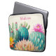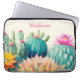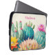 Cette belle pochette d'ordinateur portable avec une illustration de cactus et un succulent est le cadeau parfait pour une femme ou une fille qui aime ces merveilleux plantes. Ce design audacieux et magnifique attire certainement l'attention. Le nom sur la manche de l'ordinateur portable est personnalisable et ferait un grand cadeau personnalisé.