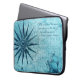 Protégez votre tablette électronique avec ce coque à manches en néoprène. Décoré dans les tons bleus, avec un rose de boussole nautique vintage et carte. Citation inspirante de l'historien Edmund Gibbon : "Le vent et les vagues sont toujours du côté du navigateur le plus compétent."