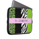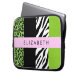 Housse Pour Ordinateur Portable Empreinte de léopard, Zebra Print, Vert, Votre nom