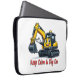 Mascotte d'excavatrice jaune souriante sur une housse pour ordinateur portable élégante. Citation « Gardez votre calme et continuez à creuser » parfaite pour les amateurs de construction, les ingénieurs et les fans de pelleteuse. Convient à la plupart des tailles d'ordinateurs portables, durable et amusant !