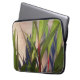 Le design rétro de tissu sur cette Manche Ordinateur Portable de 13 pouces a été créé à partir d'une photo originale de ZoeSPEAK de longs feuilles vert fin d'après-midi, jetant des ombres bleues sur le mur en stuc derrière. Les plante sont des pétunias mexicains, aux tiges rougeâtres. L'atmosphère est somptueuse après-midi d'été d'autrefois.