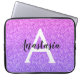 La parties scintillant violette à l'ombre de Girly et de glam scintille le nom du monogramme et la pochette de l'ordinateur initial. Personnalisez avec votre nom personnalisé en noir et votre monogramme initial en blanc. Vous pouvez modifier la couleur du texte, le style et la taille de police à l'aide de l'option personnaliser.