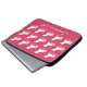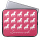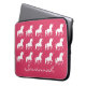 Douille rose d'ordinateur portable du néoprène de filles de silhouette personnalisée par motif de licorne. Un joli motif des silhouettes blanches de licorne sur l'arrière - plan rose lumineux. Customisez pour changer la couleur d'arrière - plan en une autre couleur. Personnalisez cette caisse faite sur commande d'ordinateur portable avec le nom dans la belle police de manuscrit sous les licornes. Accessoires électroniques orientés de jolie licorne pour des enfants, des tweens et des filles d'ado.