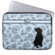 Housse Pour Ordinateur Portable Fleur bleu noir rayée avec silhouette de chien