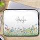Cette pochette d'ordinateur portable fleurie est décorée de fines fleurs d'aquarelle, de feuillage et de papillons aux couleurs pastel. Facilement personnalisable avec votre nom et votre initiale. Aquarelle originale © Michele Davies.