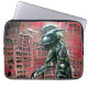 Créature alien métallique verte géante envahissant une ville métropolitaine. Wombo Dream AI et collaboration d'artistes.