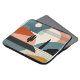 Paysage abstrait d'une scène désertique aux lignes et aux formes dans les tons marron, orange, turquoise, beige, bronzé et noir.