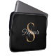 Housse Pour Ordinateur Portable Monogram Elegant Script Name Black Gold