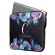 Monogramme Bleu foncé avec Fleurs violettes et Bleues Neoprène Manches Ordinateur Portable Stylisé et personnalisé! Customisez avec votre propre initiale et nom pour un design vraiment unique.