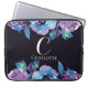 Housse Pour Ordinateur Portable Monogramme bleu foncé avec violet et fleurs bleues