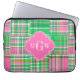 Housse Pour Ordinateur Portable Monogramme Emerald Hot rose Preppwork Madras