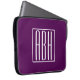 Housse Pour Ordinateur Portable Monogramme initial | Blanc Sur Violet Profond