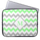 Cette manche portable moderne dispose d'un motif chevron vert menthe et gris clair avec un monogramme personnalisé dans l'ombre verte correspondante.