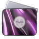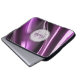 Cette pochette d'ordinateur portable violet monogrammée présente un design réfléchissant abstrait avec un nom personnalisable et un monogramme dans les tons violets.