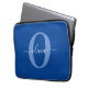 Housse Pour Ordinateur Portable Monogramme personnalisé Nom du script Bleu Blanc